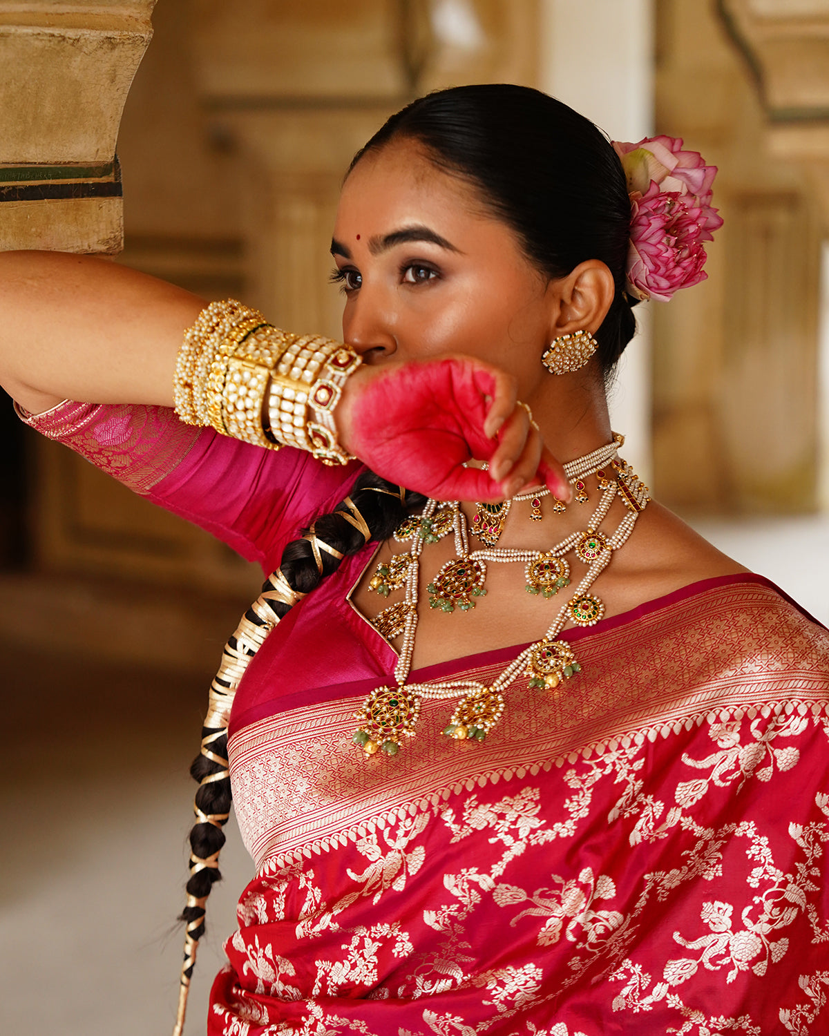 All our products are meticulously handwoven in Banaras using the finest pure silk, embodying timeless craftsmanship and tradition.