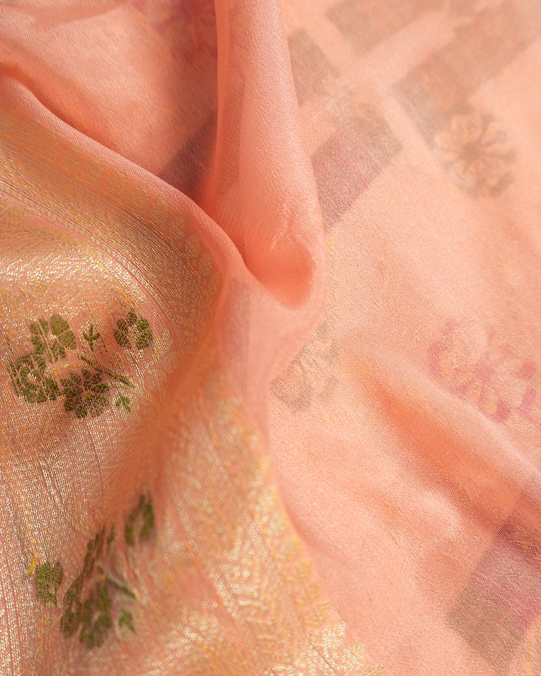 Soft Peach Pure Chiffon Saree with Floral Meenakari Weaves