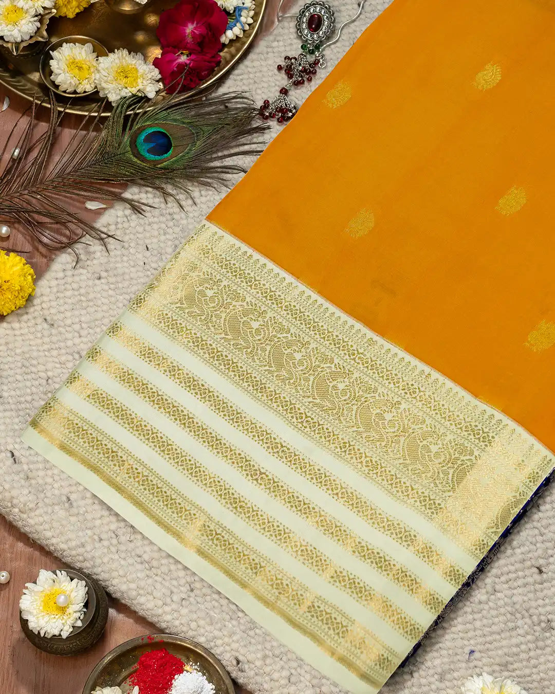 Turmeric Yellow Pure Kanjivaram Saree with Minimal Zari Weaves