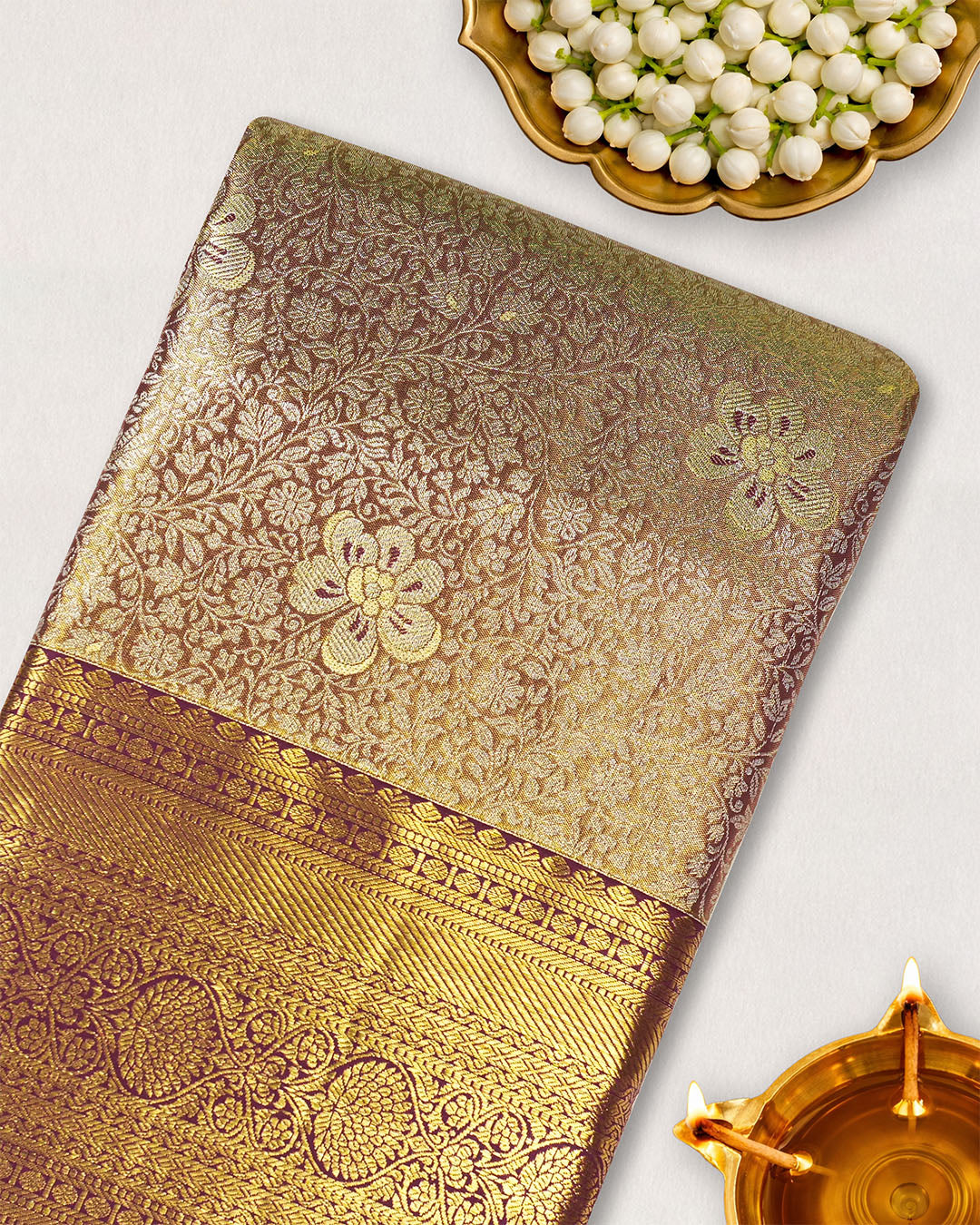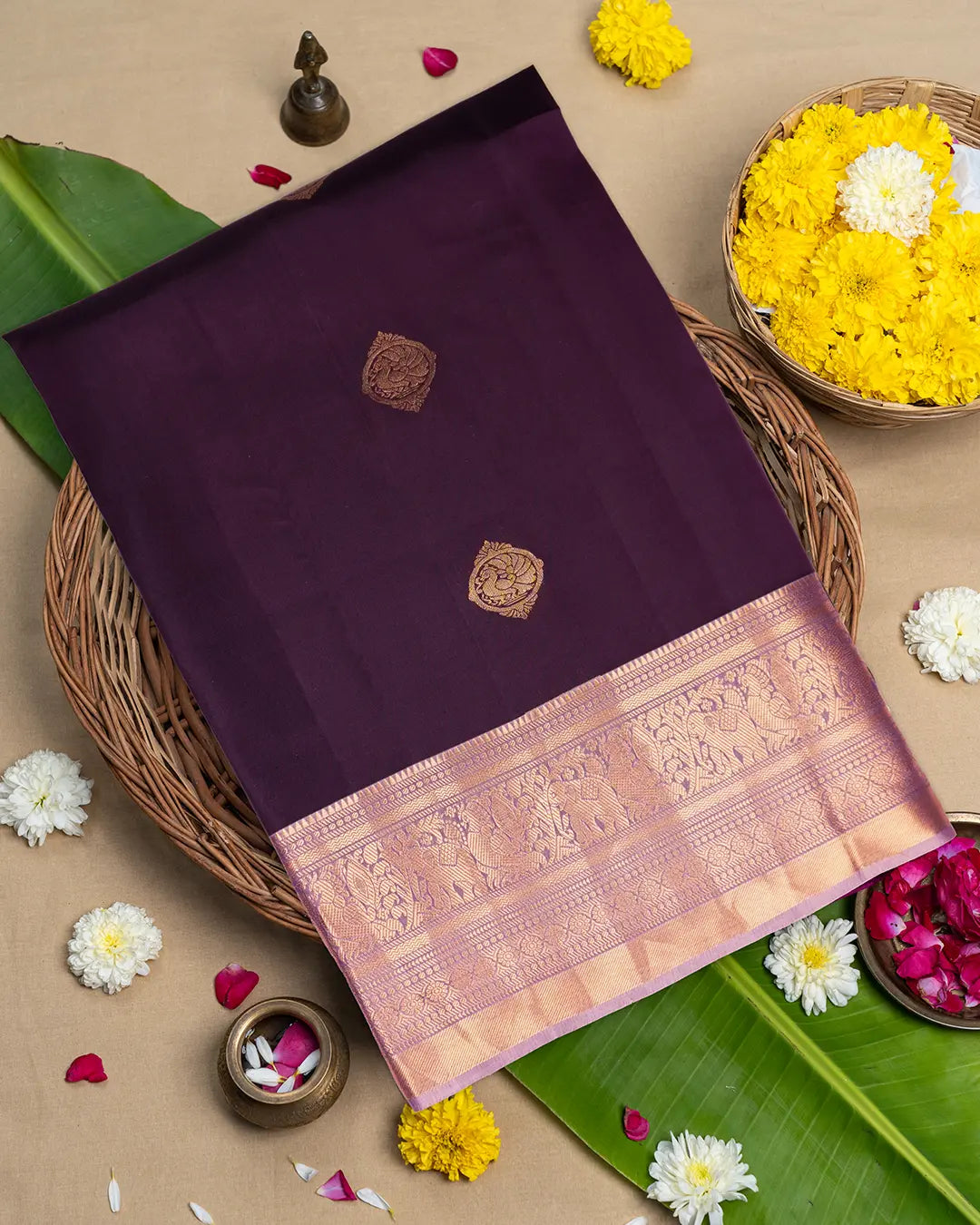 Wine Pure Kanjivaram Saree with Regal Aureate Floral Weave