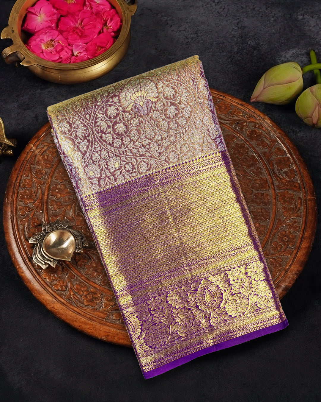 Majestic Violet Pure Kanjivaram Saree with Medallion Floral Weaves