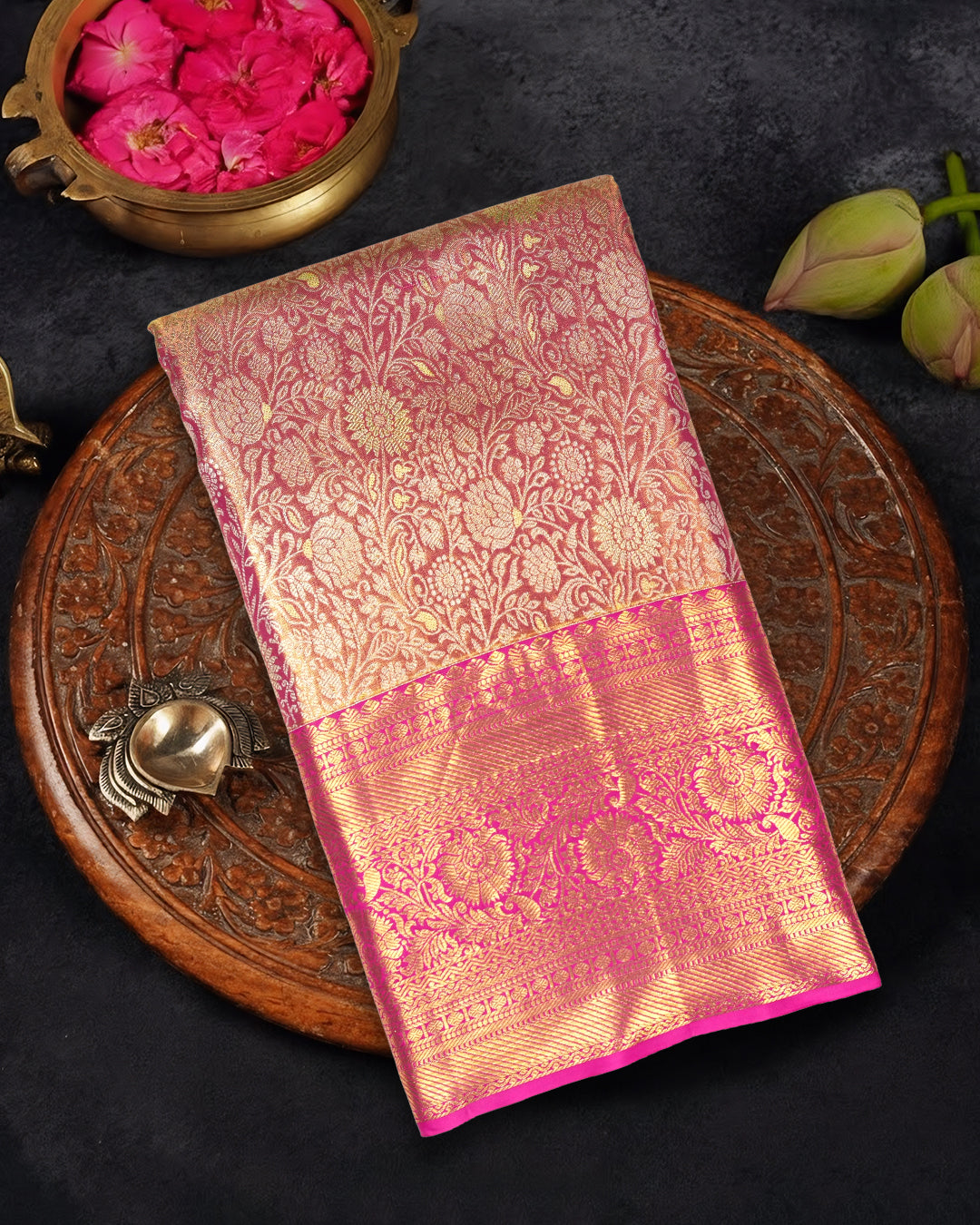 Dynasty Rose Pure Kanjivaram Saree with Floral Jaal and Royal Border
