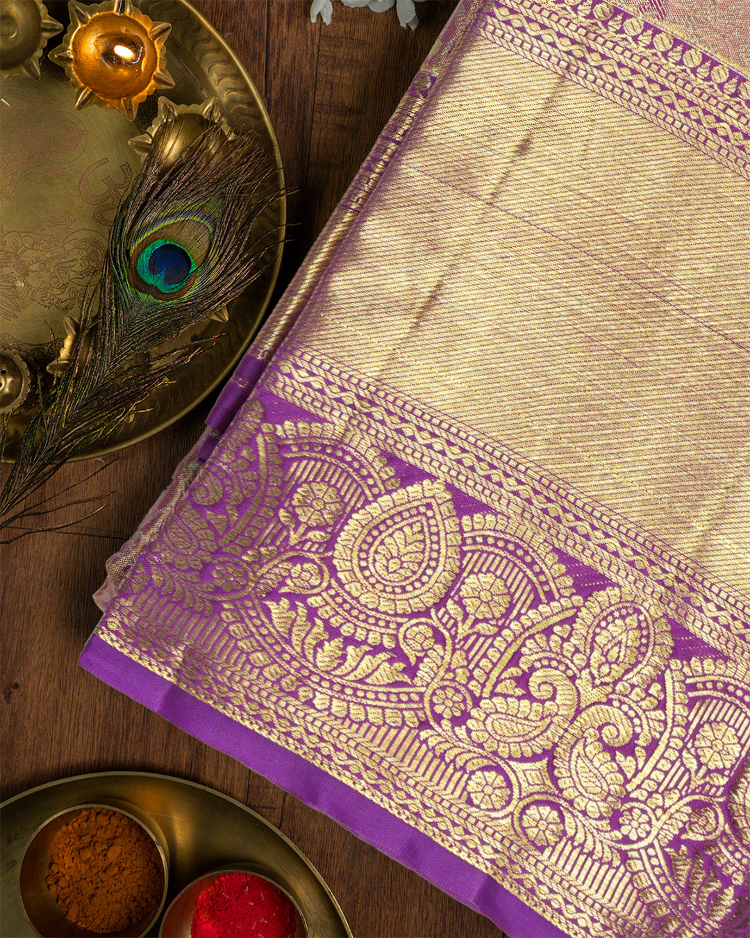 Purple Gold Pure Kanjivaram Saree with Zari Paisley Border