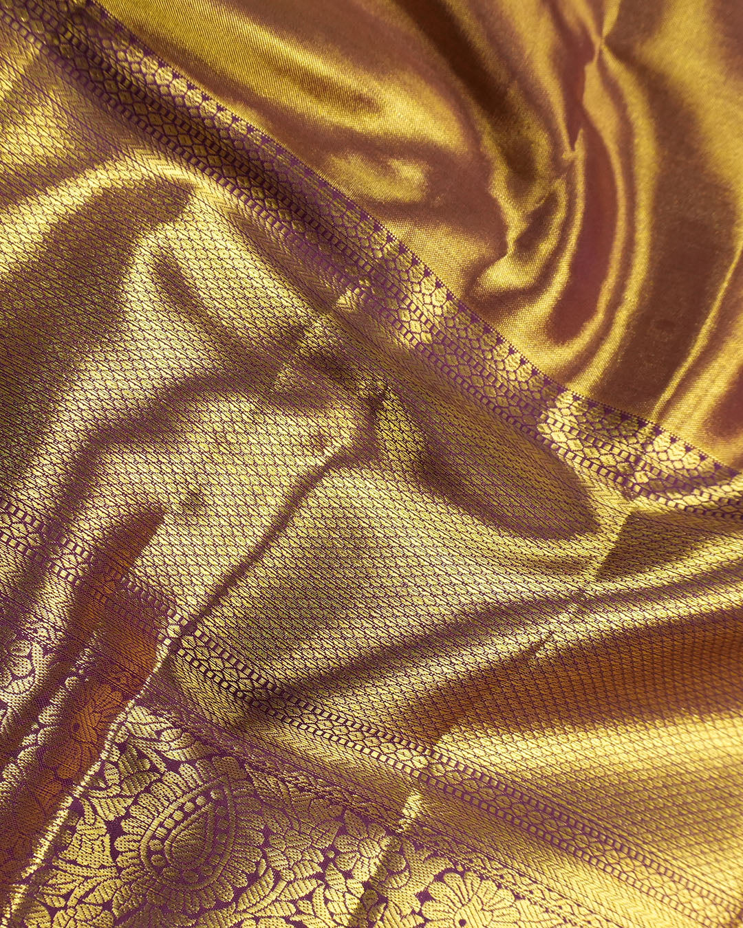 • Color: Majestic violet base with radiant gold zari and amethyst-toned accents