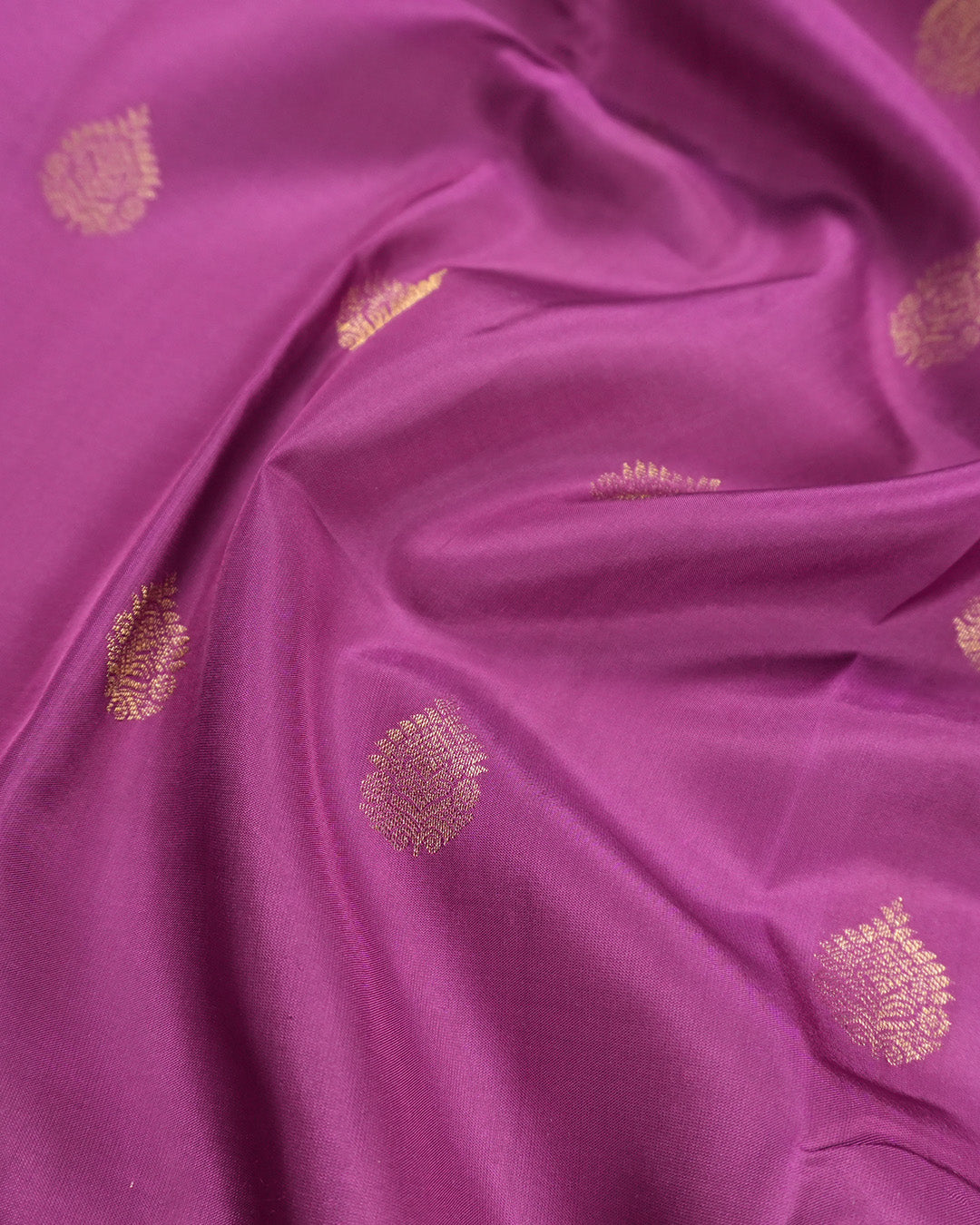 Violet Pure Kanjivaram Saree with Soft Gold Butta Weaves