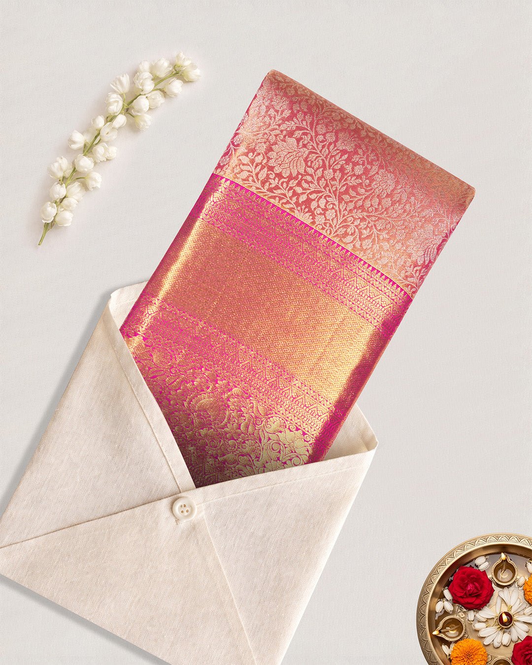 Magenta Pink Pure Kanjivaram Saree with Floral Weave and Paisley Border