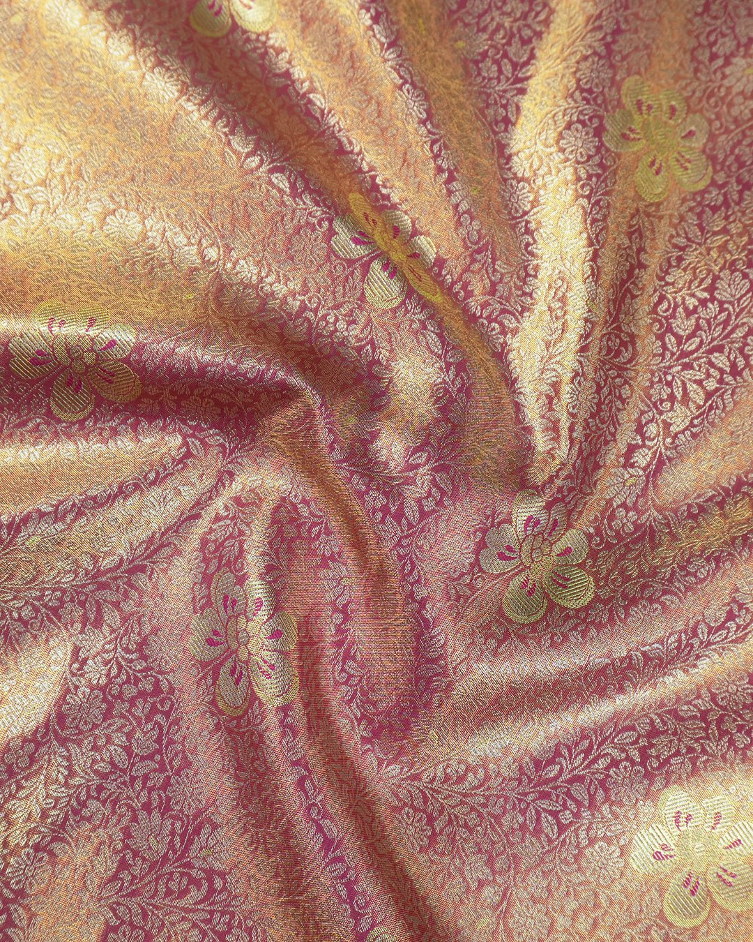 Pink Pure Kanjivaram Saree with Floral Jaal Weaves and Brocade Border