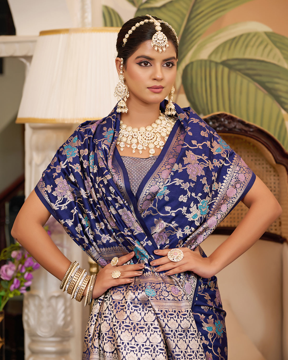 Navy Pure Banarasi Saree with Opulent Meenakari Zari Highlights