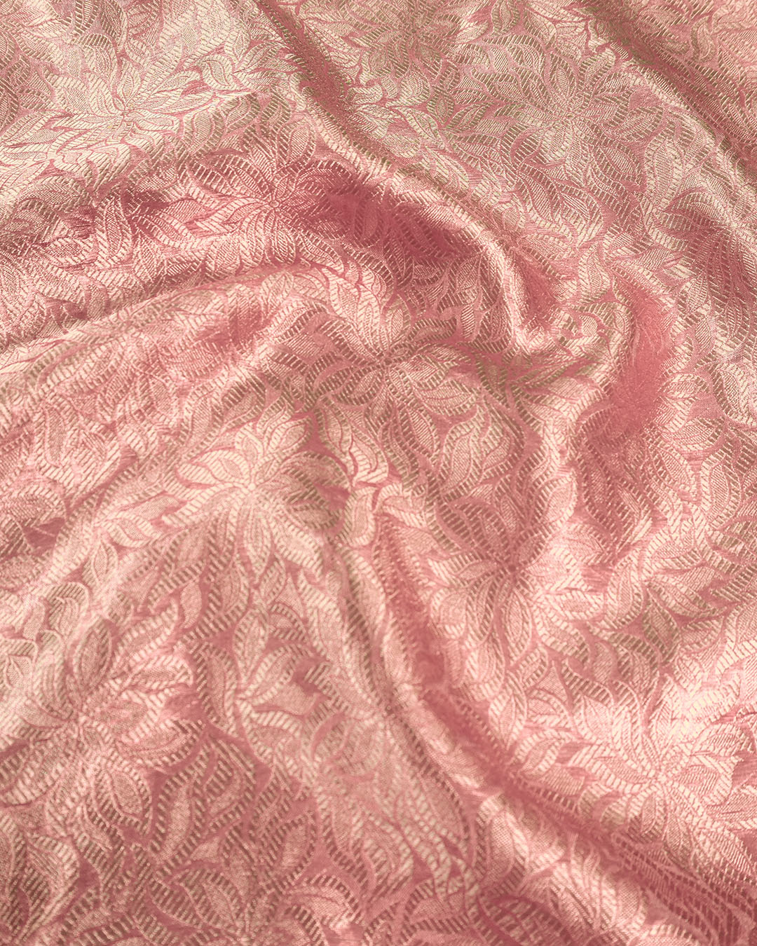 Blush Rose Pure Tissue Saree with Heritage Floral Jaal and Border
