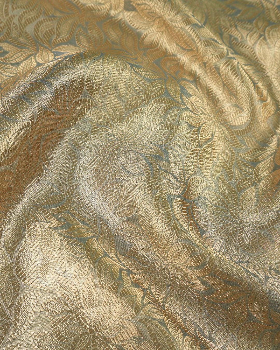 Antique Gold Pure Tissue Saree with Delicate Buti Weaves